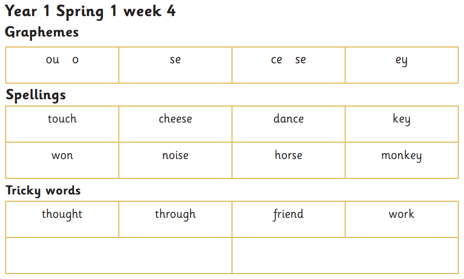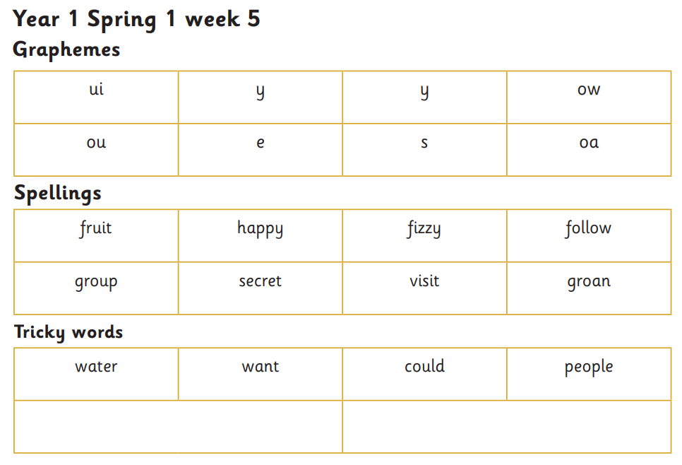 Year 1 spelling to be tested Monday 29th September 2025