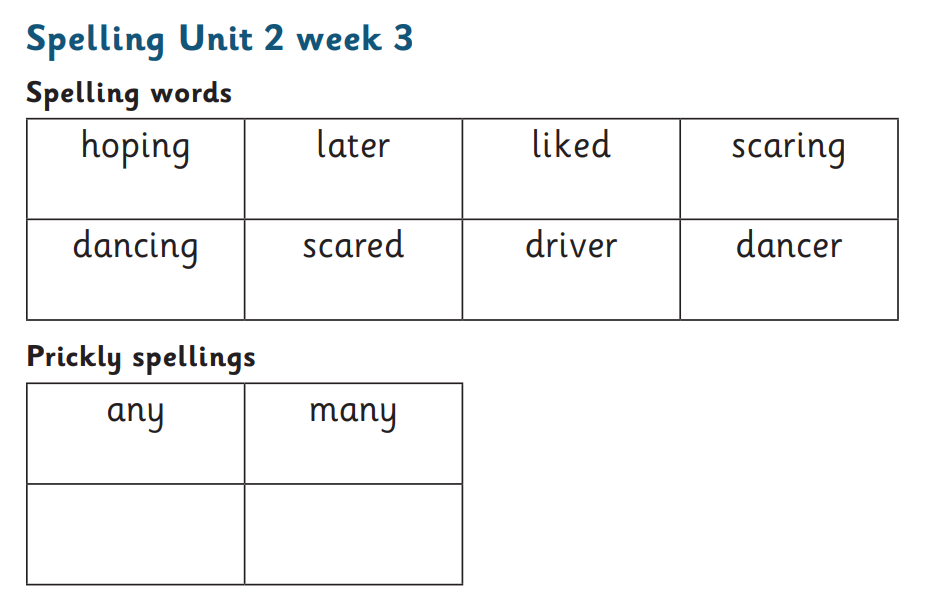 Year 2 spellings