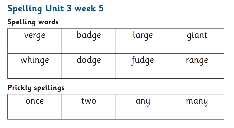 Spellings to be tested on Monday 22nd September 2025
