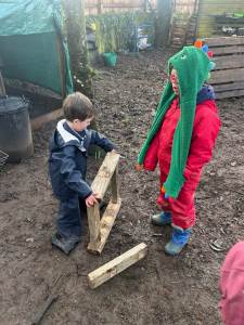 The clay is always a huge hit with these year groups. Lots of creativity and patience making some wonderful pieces. There were some culinary delights being thrown together in the mud kitchen and a homemade seesaw gave lots of entertainment.