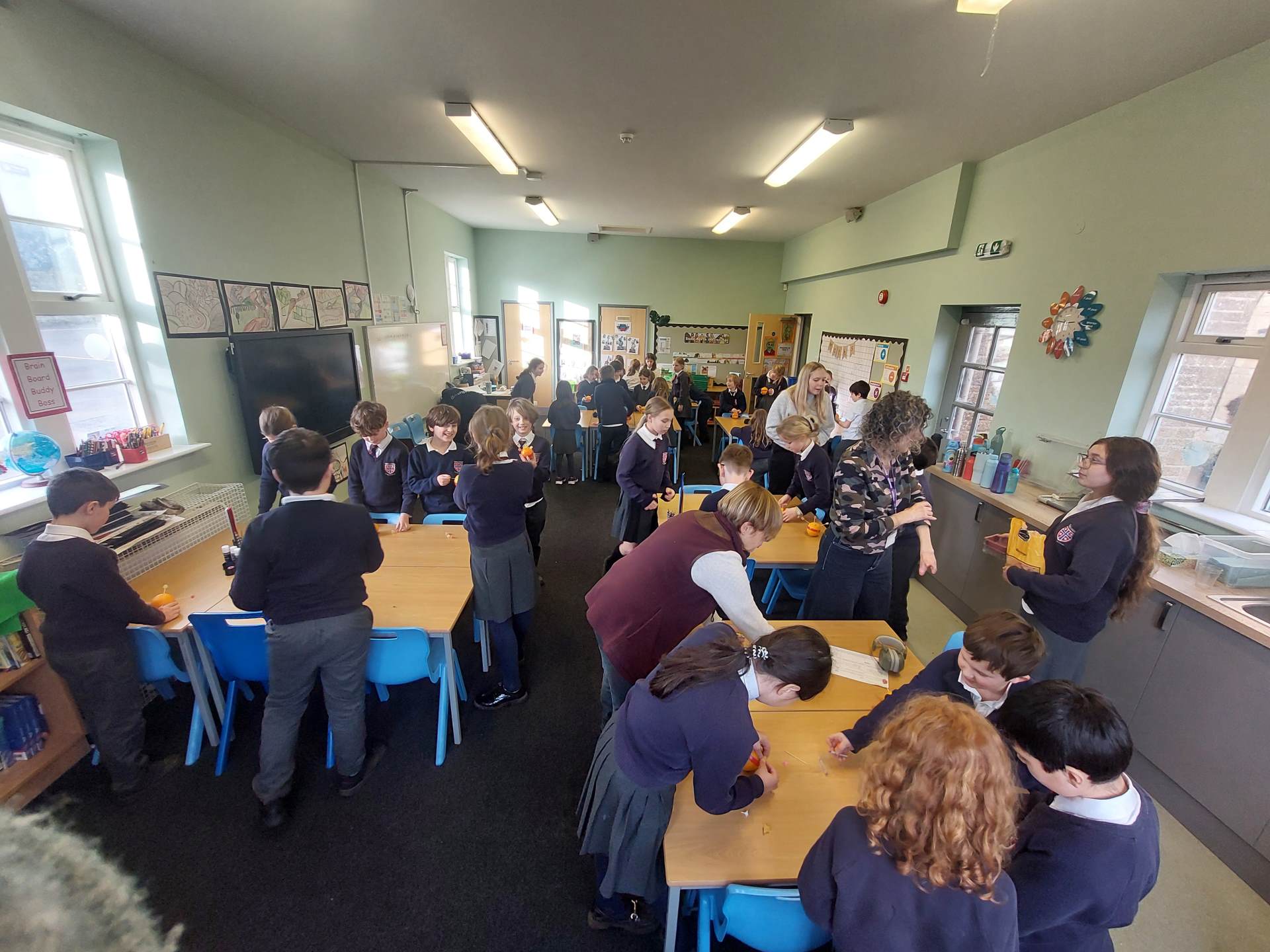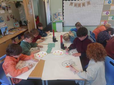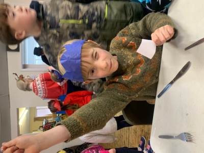 Moira and Judy, from Open the Book, came in to visit us. We talked all about Christingle and the meaning behind the different elements. Then we all made a Christingle ready to take to church with us on Thursday.